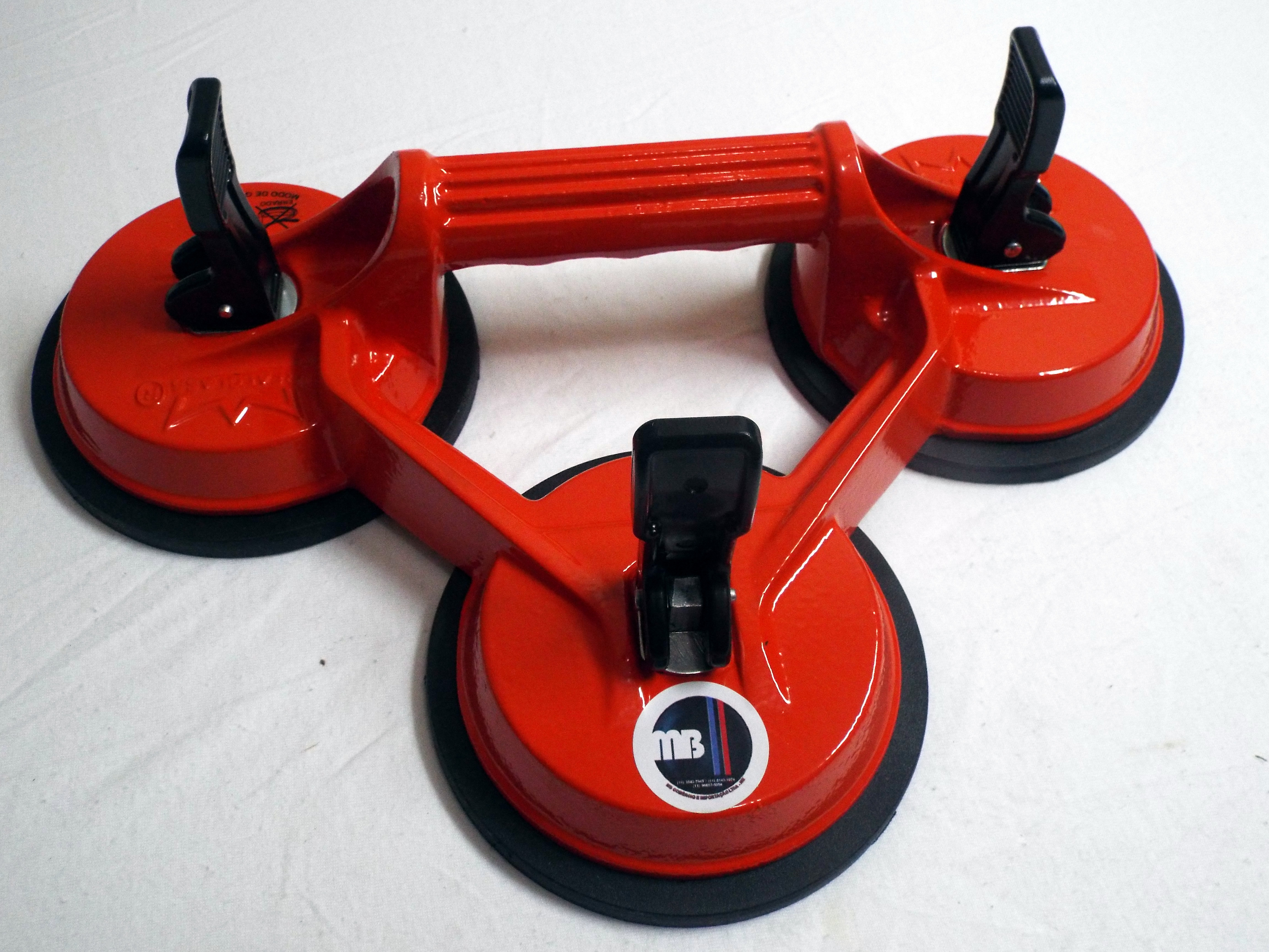 De alumínio fundido, com pintura epóxi laranja, a ventosa tripla fixa e possui punho anatômico.